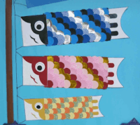 個人が作った小さなこいのぼりを、ひとつの大きなこいのぼりになるように壁に貼っても素敵!