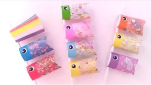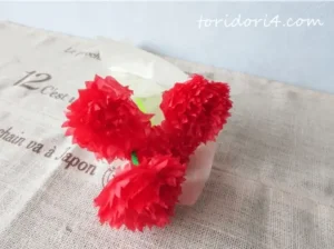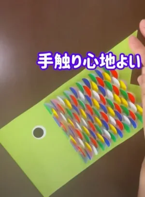トイレットペーパーの芯やキッチンペーパーの芯を切って折り紙を貼りつけるだけだから、簡単!
